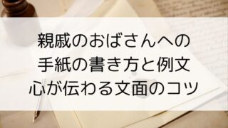 親戚のおばさんに手紙を書くとき、「どんな言葉づかいが良いのかな」「どんな文面にすれば気持ちが伝わるかな」と悩む方は多いですよね。この記事では、親戚のおばさんに送る手紙の書き方の基本から、シーン別の例文、そしてそのまま使えるテンプレートまでを...
