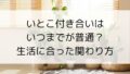 いとこ付き合いは、いつまで続けるのが自然なのでしょうか。子どものころはよく会っていたのに、大人になると少しずつ距離が変わ...