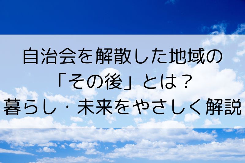 この記事では、自治会の解散をめぐる流れや、その後の生活・人とのつながり・地域運営の変化をわかりやすく解説します。