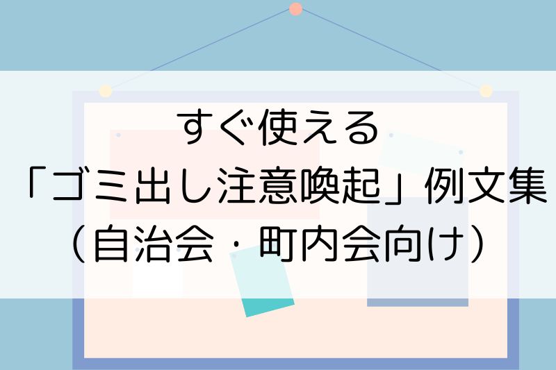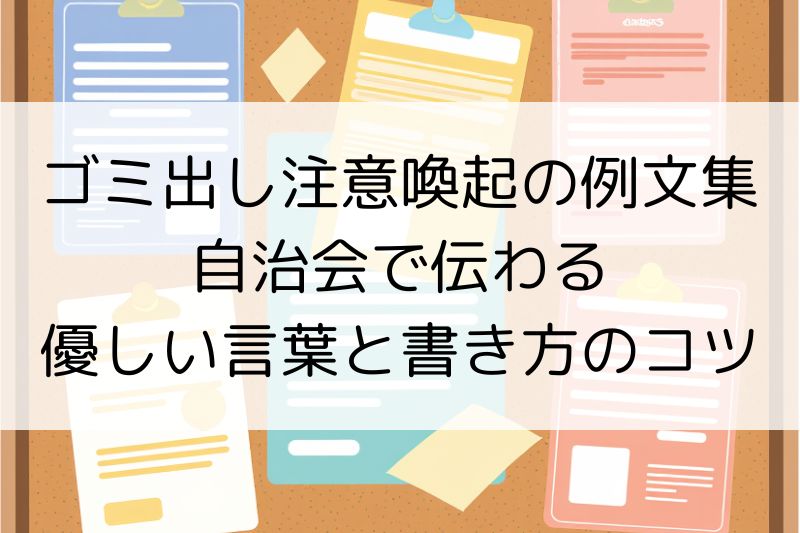 この記事では、自治会や町内会で「ゴミ出し」に関する注意喚起を伝える際の考え方と、実際に使える文例を紹介しました。